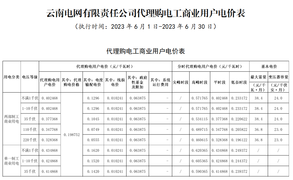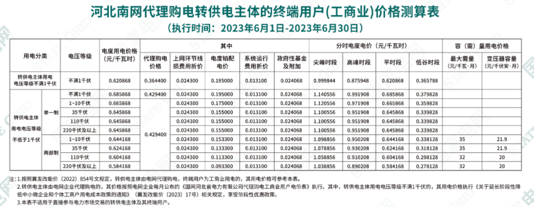 2023年6月全国各地已发布电网企业代理购电价格。